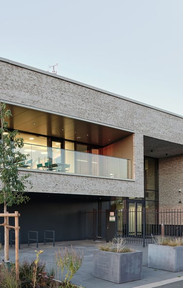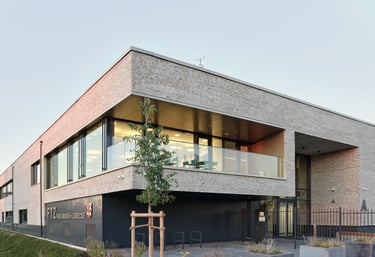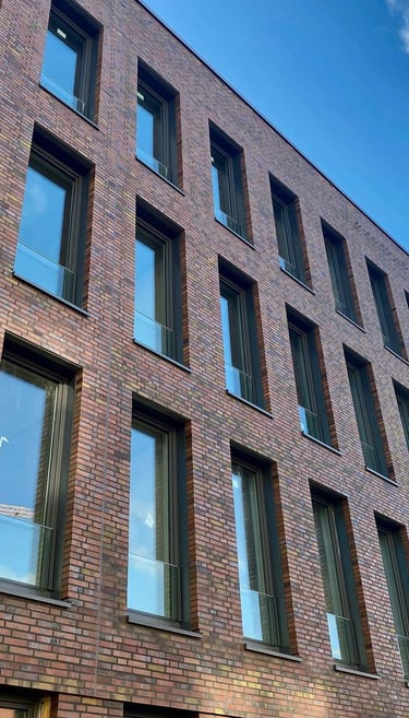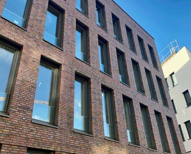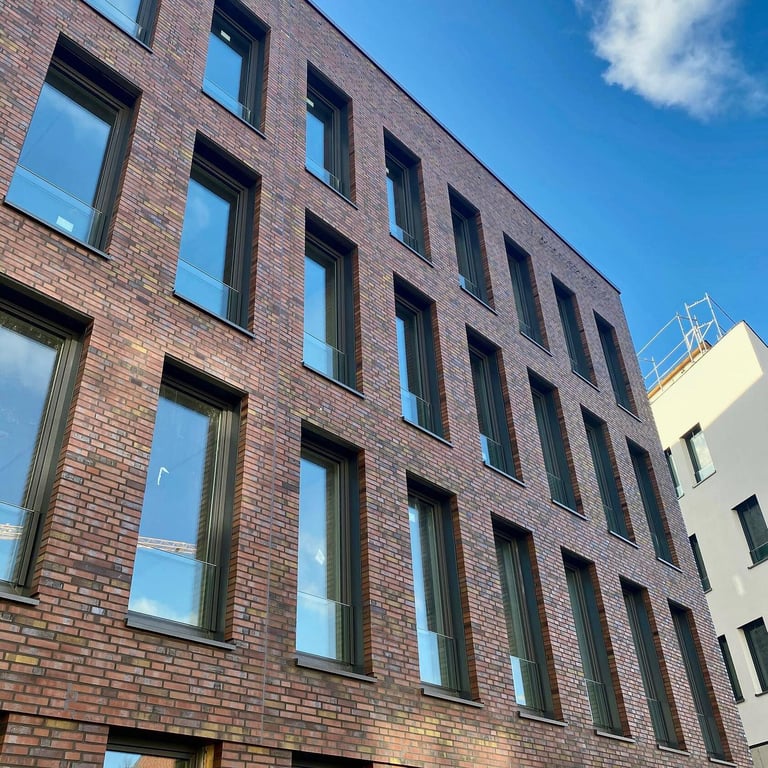 Konzept: Repräsentativer Neubau als Unternehmenszentrale, der moderne Arbeitswelten mit dem traditionellen Baustoff Klinker verbindet.